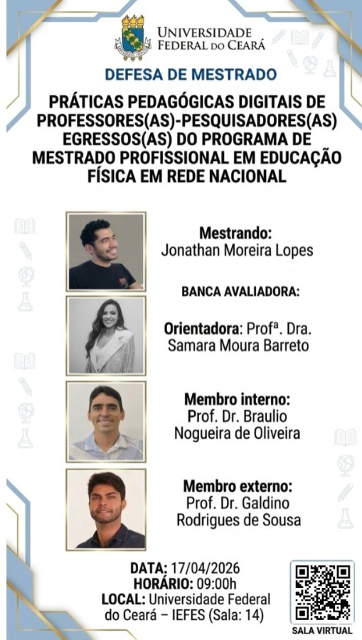 Divulgada defesa de mestrado do estudante: Jonathan Moreira Lopes, sob orientação da professora Dra. Samara Moura Barreto (17/04/26 – 09:00h)